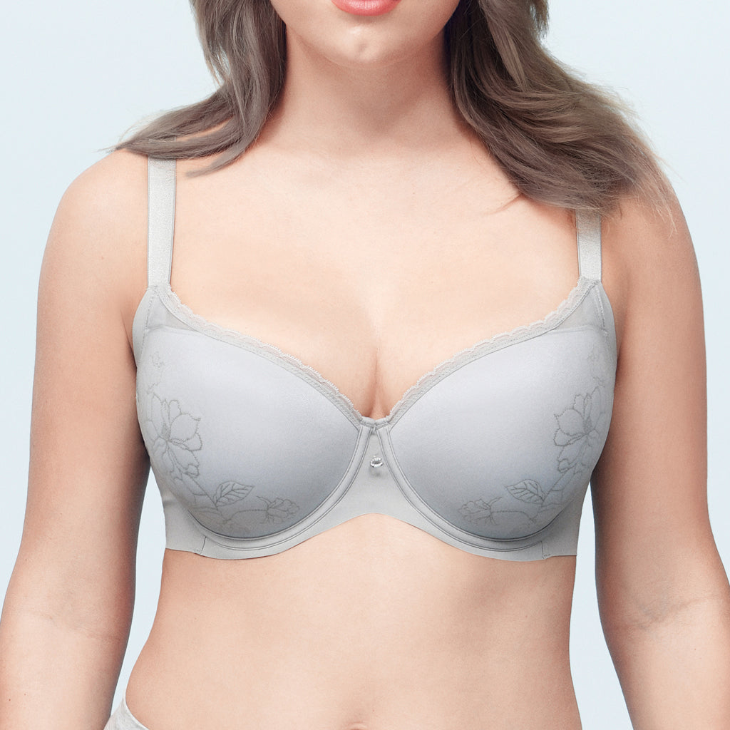 【輕舒適】收副乳高側收刺繡立體鋼圈薄墊胸圍