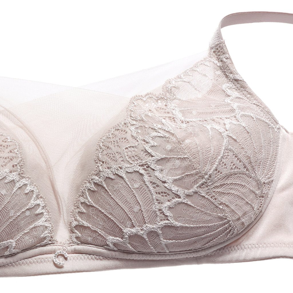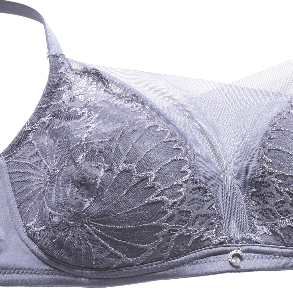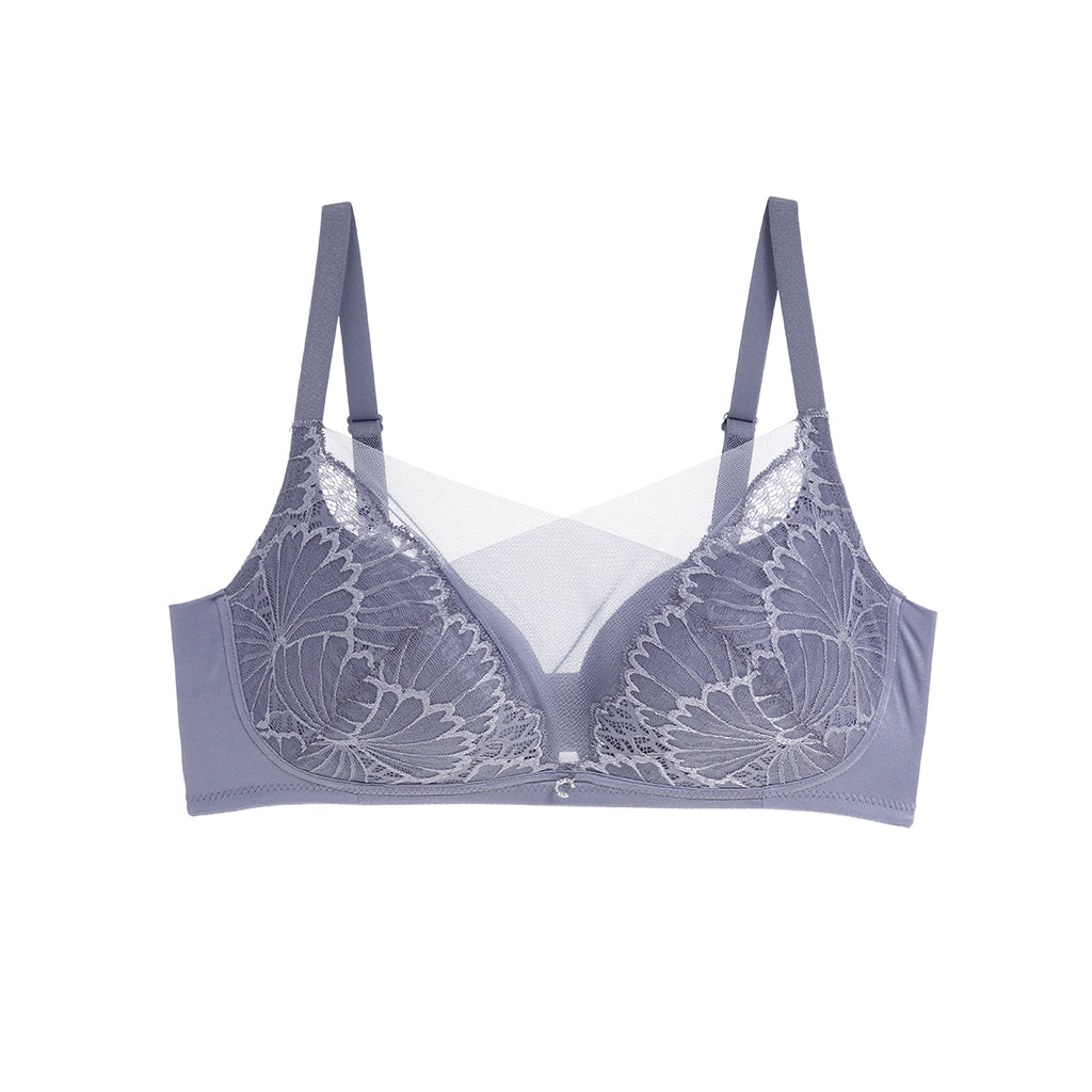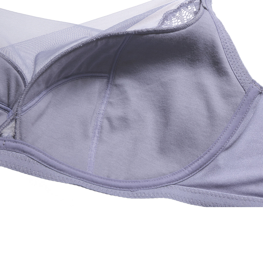 【健康零壓】防走光抑菌蕾絲拼接網紗純棉杯平口無鋼圈胸圍