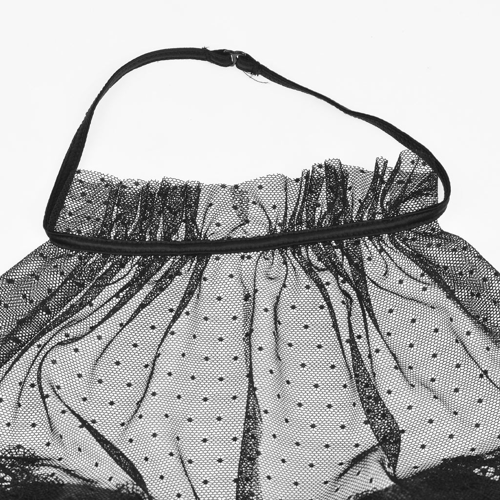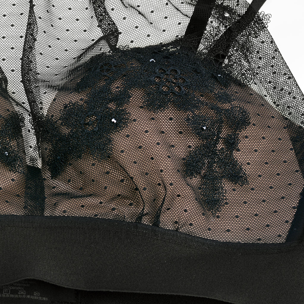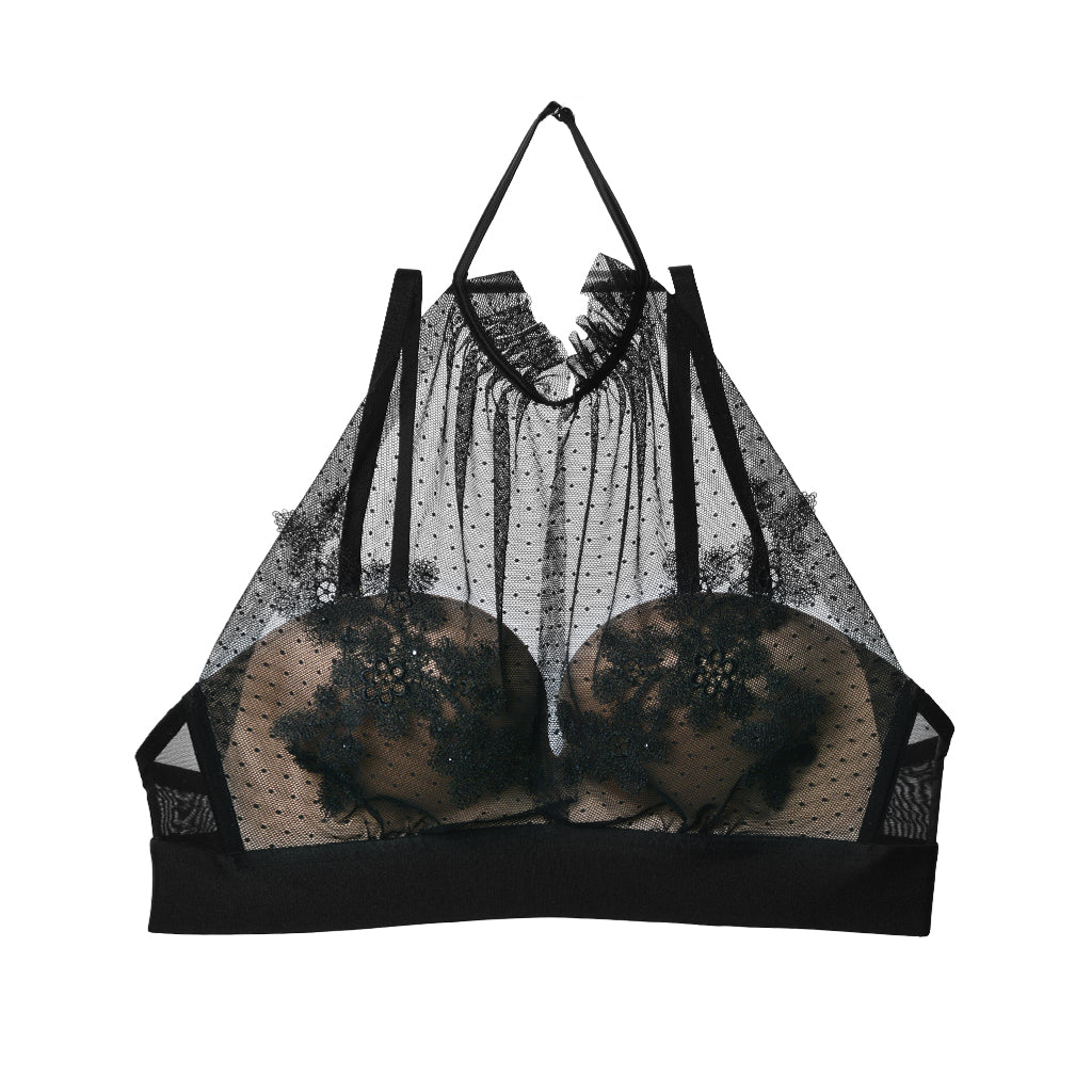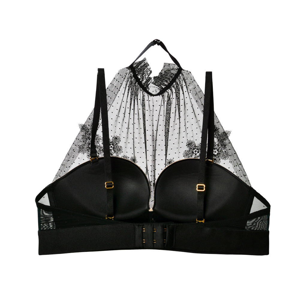 - 胸前大幅波點網紗掛頸設計,朦朧間展現性感