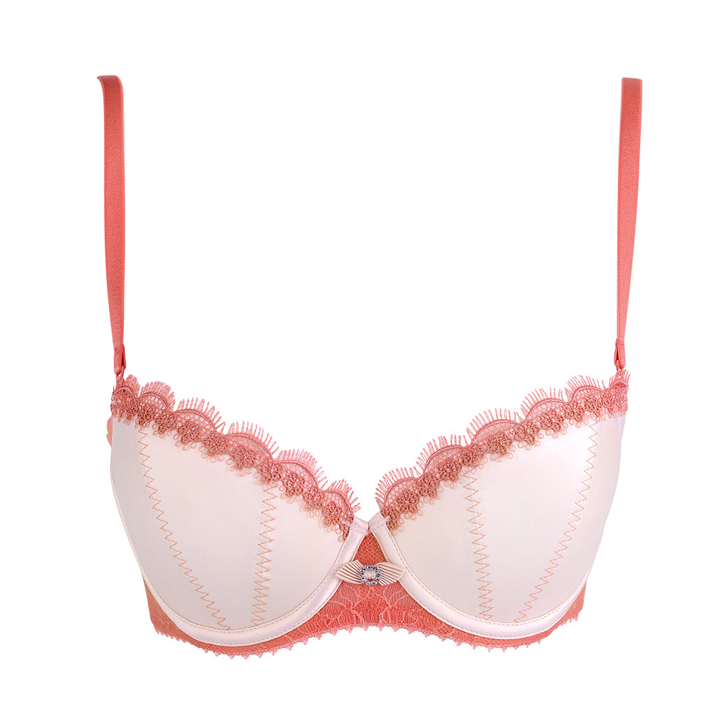 - 光澤色丁罩杯高貴優雅,拼接睫毛蕾絲飾邊,散發浪漫情懷