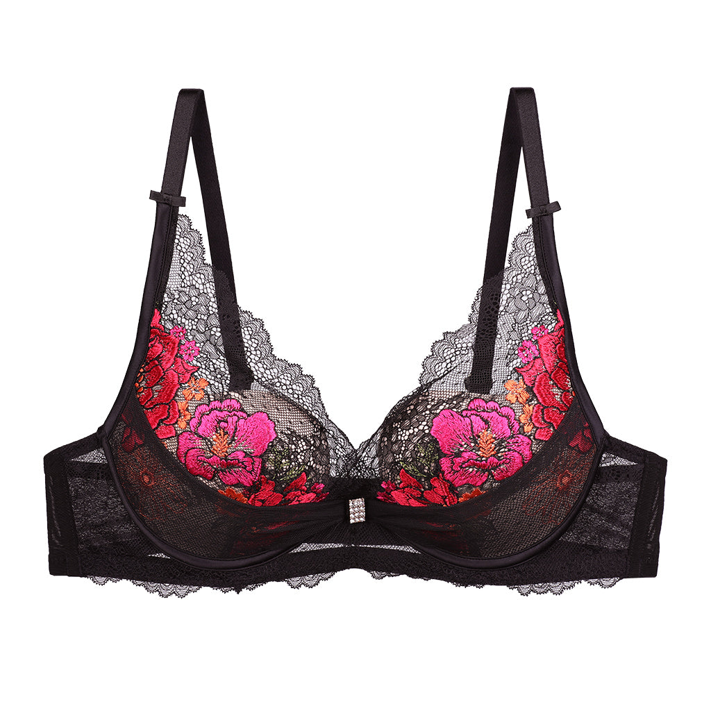 【國色天香】Leavers Lace蕾絲拼接花朵刺繡鋼圈胸圍