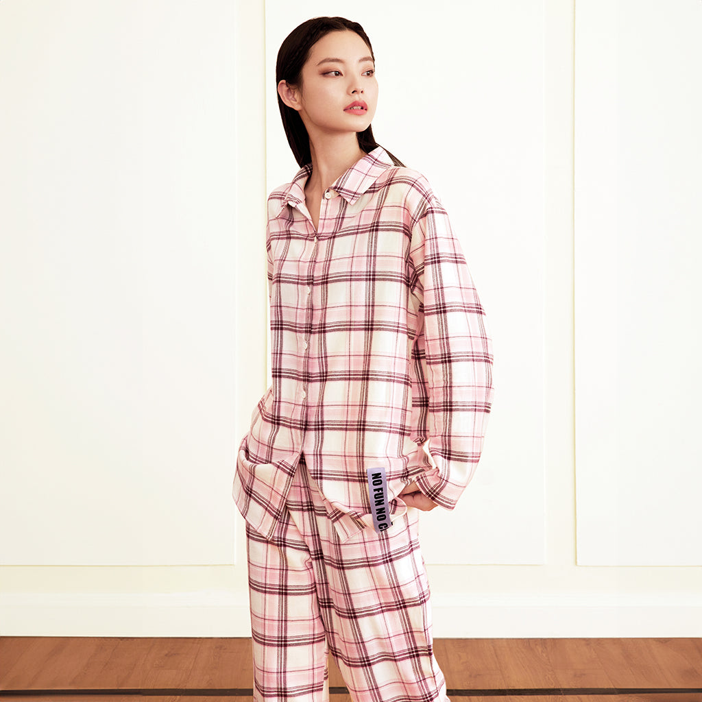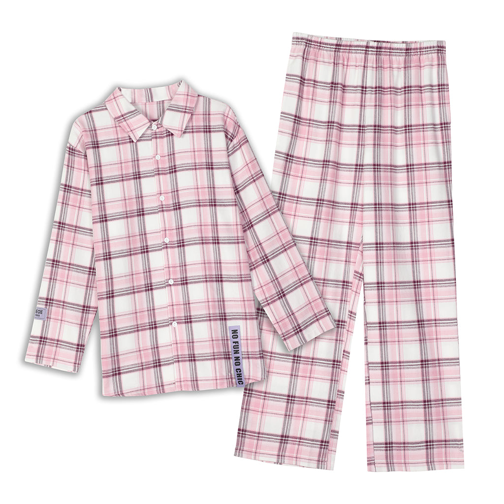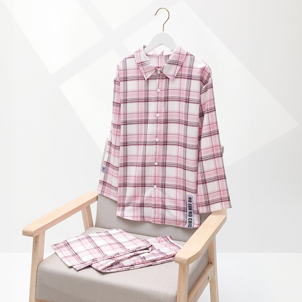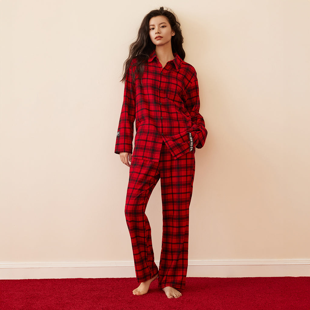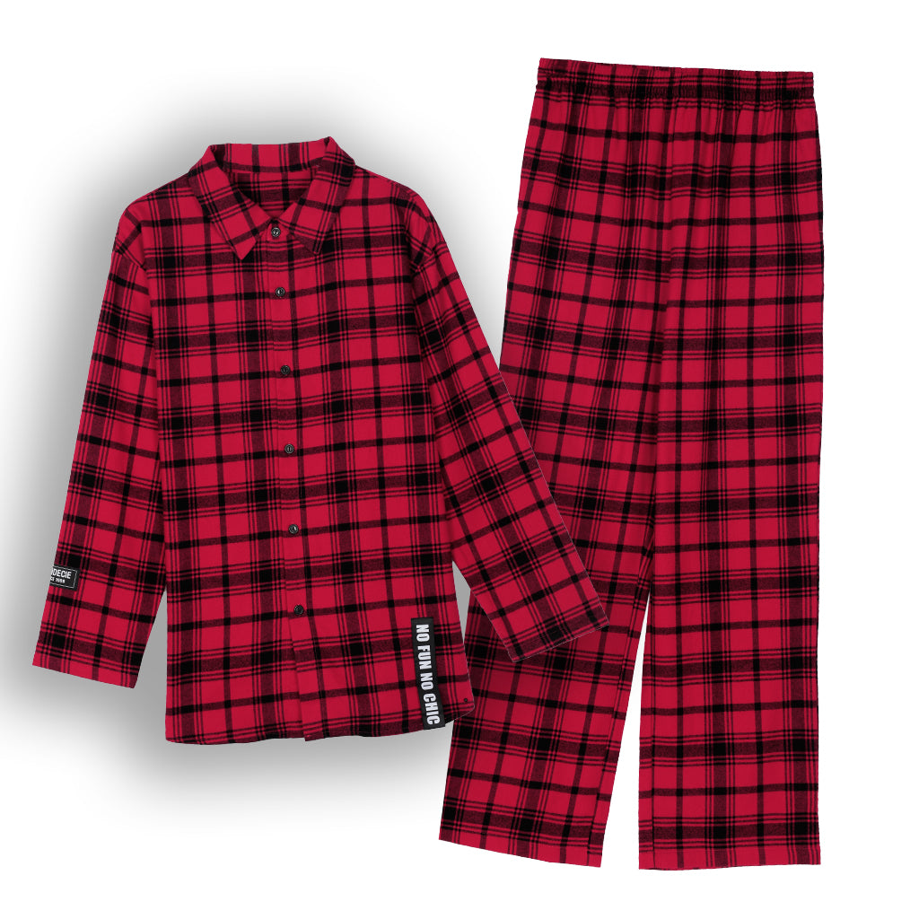 【悠閒生活】純棉格仔睡衣套裝 - 長袖上衣及長褲 - Red3 / M 暫時缺貨,補貨後會盡快寄出。