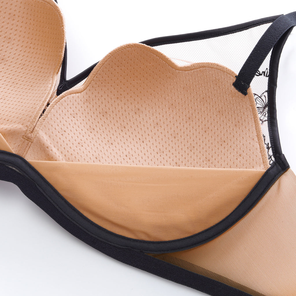 - 杯面網紗提拉至肩帶,達提升胸形效果