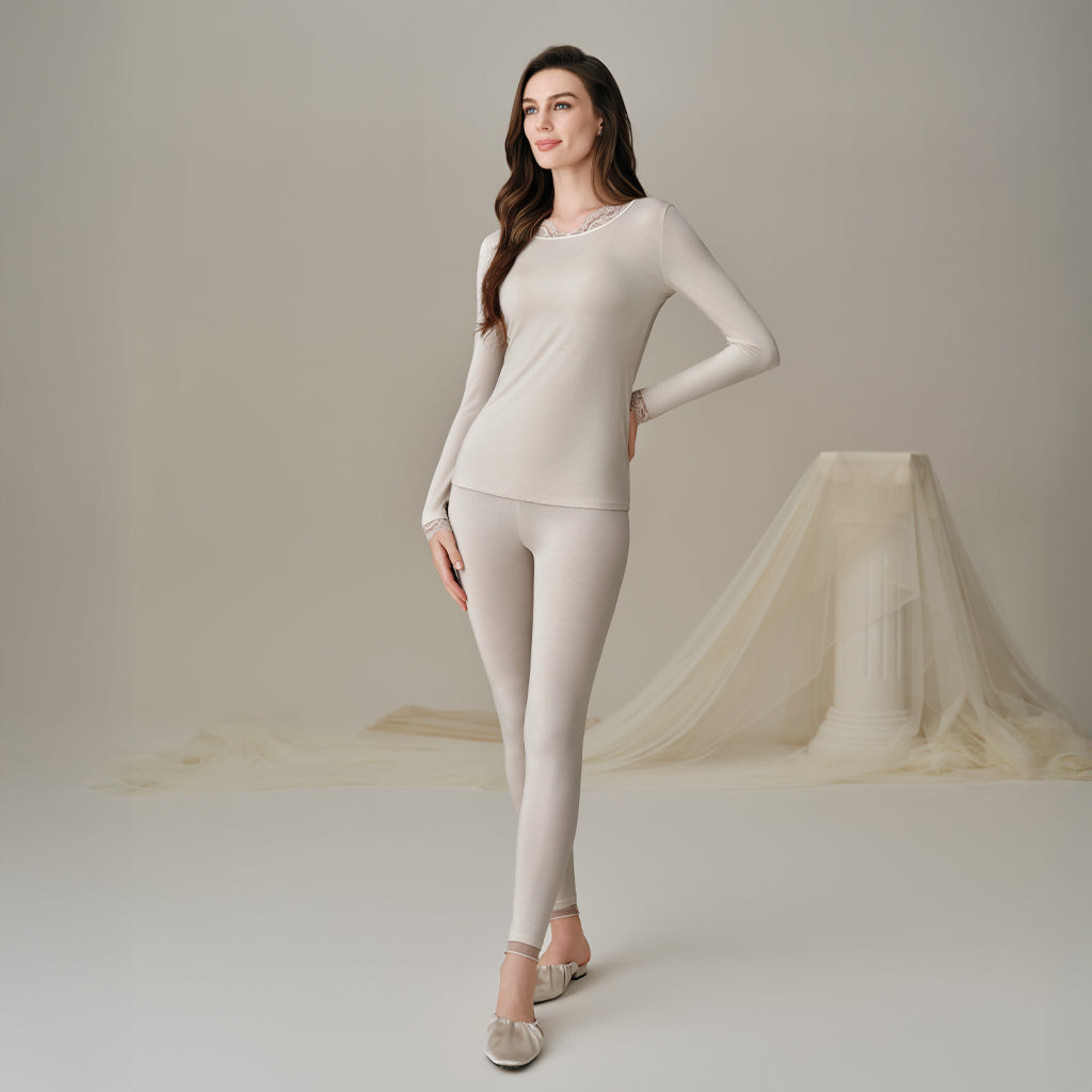 【美膚】防靜電抑菌椰油真絲Leavers Lace蕾絲飾邊長袖保暖衣