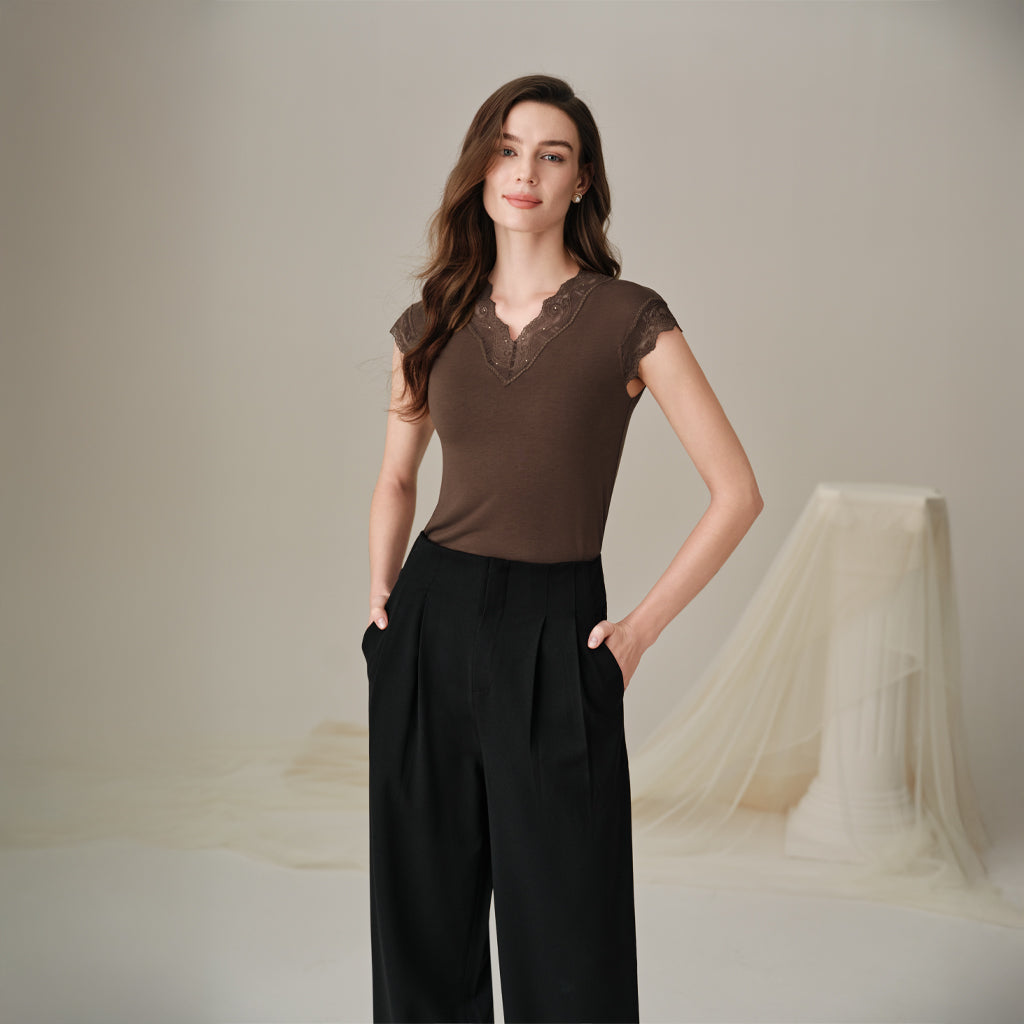【美膚】防靜電抑菌椰油真絲Leavers Lace蕾絲飾邊短袖保暖衣